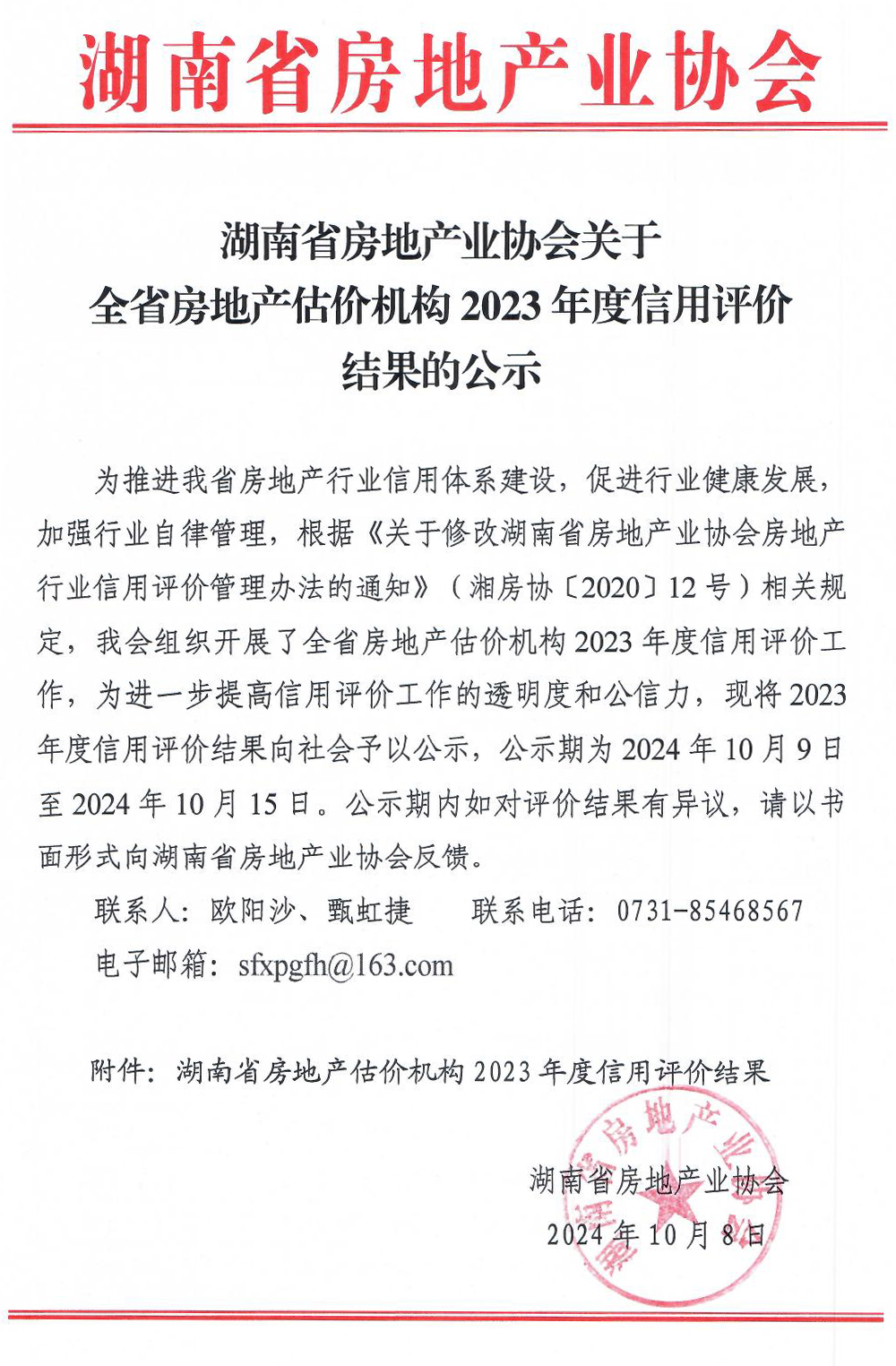 湖南省房地產估價機構2023年度信用評價結果