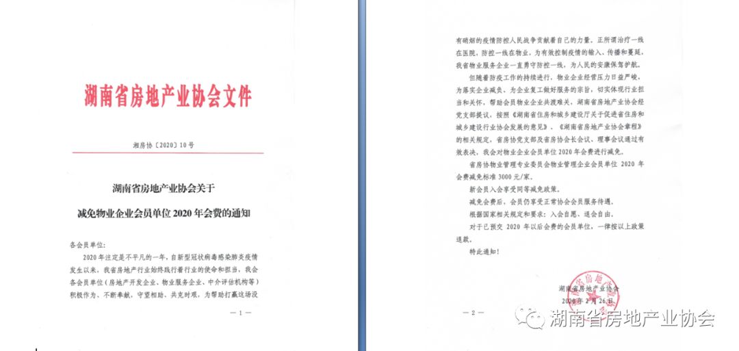 疫情過后行業如何迅速恢復生產,健康發展是省房協關切的重點。抗“疫”站打響以來,省房協一手推進抗疫防控,一手調研抗疫實情。據初步統計,疫情期間物業行業累計使用口罩近980萬個,84消毒液1151噸,酒精287.5噸,防疫物資和因“疫”而增加的人工成本高達1.5億元,為我省疫情防控工作做出了重要貢獻,卻也讓困難更為凸顯。針對因此而來的行業普遍困難,我會向湖南省財政廳、湖南省稅務局分別提交了《關于申請對房地產開發企業和物業服務企業進行專項補貼的報告》,為行業爭取扶持政策,渡過難關。報告得到了省住建廳領導的高度重視和幫助,順利提交。2月18日,國家稅務總局湖南省稅務局給予回復,表示會進一步重視并支持疫情期間物業服務行業和開發行業的減負工作,將部分我會提出的重點建議反饋至上級部門爭取政策支持。