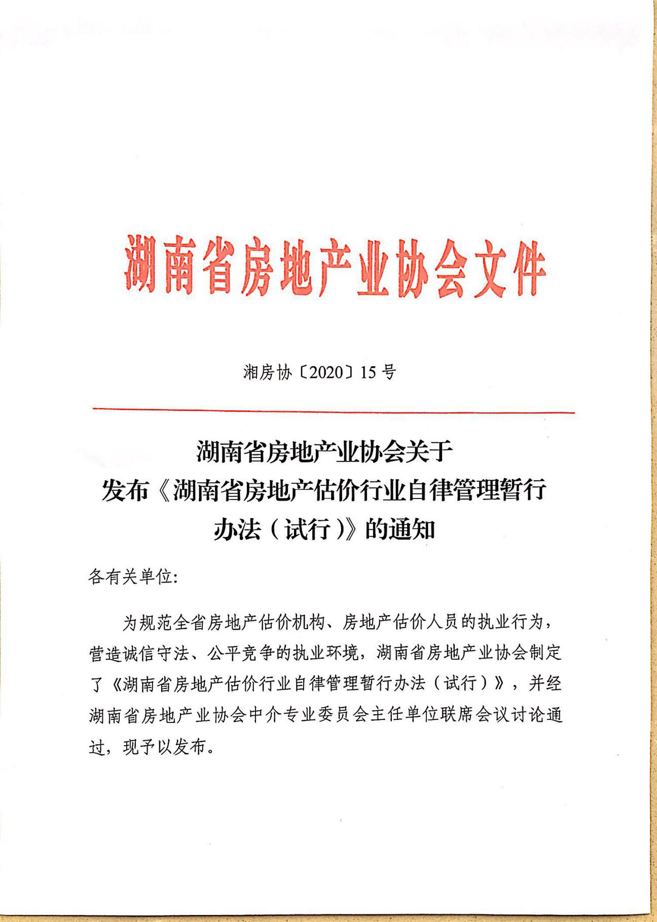 湖南省房地產(chǎn)估價(jià)行業(yè)自律管理暫行辦法(試行)的通知