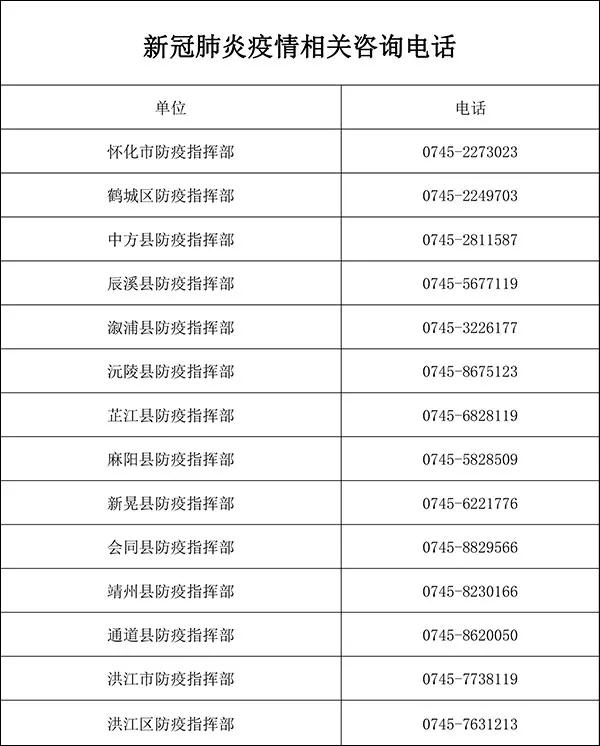 市縣兩級疫情防疫指揮部咨詢熱線號碼如下: