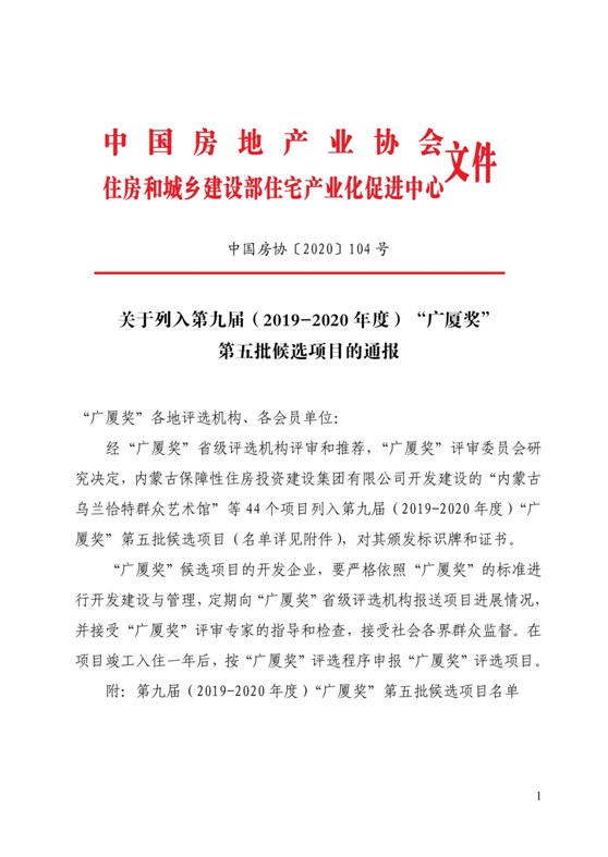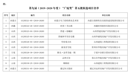 (附:關于列入第九屆(2019-2020年度)“廣廈獎”第五批候選項目的通報)