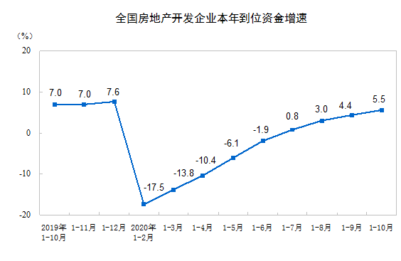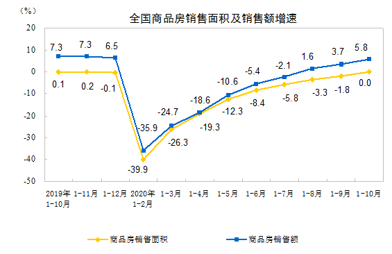2020年1—10月份全國房地產(chǎn)開發(fā)投資和銷售情況