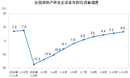 ??1—11月份,房地產開發企業到位資金171099億元,同比增長6.6%,增速比1—10月份提高1.1個百分點。其中,國內貸款24256億元,增長5.4%;利用外資154億元,下降4.7%;自籌資金56666億元,增長7.9%;定金及預收款57384億元,增長5.3%;個人按揭貸款26983億元,增長10.6%。
