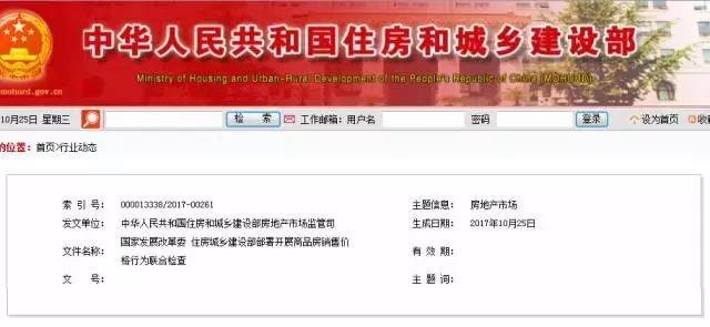 10月25日,住建部官方網站消息,近日,國家發展改革委、住房城鄉建設部聯合發出通知,部署從2017年10月30日至11月30日在全國范圍內開展商品房銷售價格行為聯合檢查,檢查對象為房地產開發企業和房地產中介機構,對房地產開發企業在售樓盤和房地產中介機構門店商品房銷售價格行為進行檢查。重點查處以下行為:
