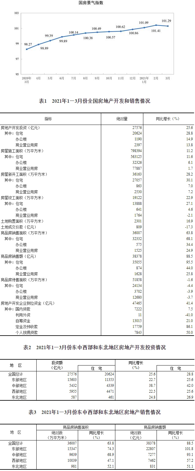 國家統(tǒng)計局 | 2021年1—3月份全國房地產(chǎn)開發(fā)投資和銷售情況