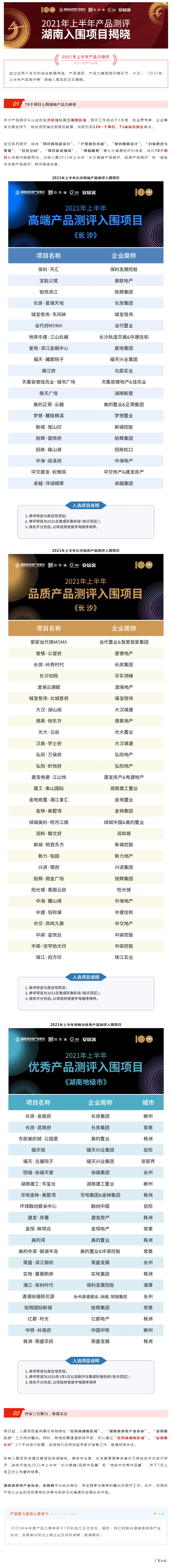 重磅!“2021年上半年產品測評”湖南入圍項目揭曉