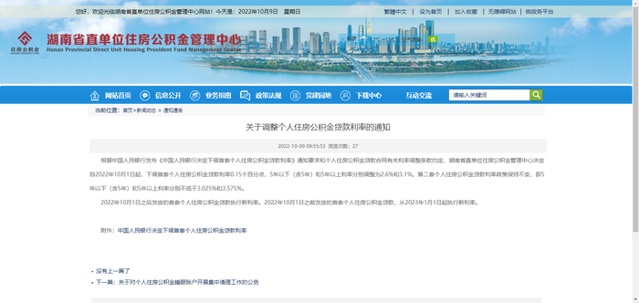 10月9日,湖南省直公積金管理中心發(fā)布了《關于調整個人住房公積金貸款利率的通知》,宣布: