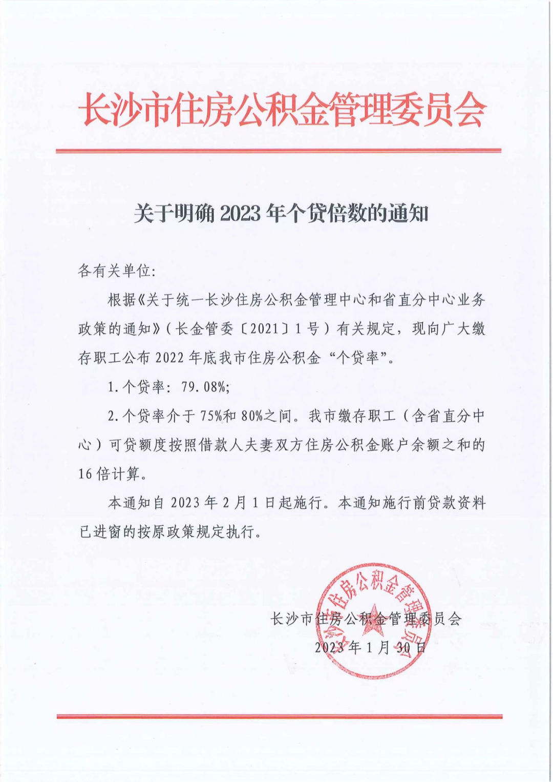 1月30日,長沙住房公積金公布明確2023年長沙市繳存職工 (含省直分中心)可貸額度按照借款人夫妻雙方住房公積金賬戶余額之和的16 倍計算。即如需申請公積金滿額貸款70萬,則公積金賬戶內余額至少需要43750元。而在去年,該計算倍數為15,今年該倍數的提升意味著對想要申請公積金貸款的購房群體將在一定程度上再次降低申請門檻。本通知自2023年2月1日起施行。本通知施行前貸款資料已進窗的按原政策規定執行。