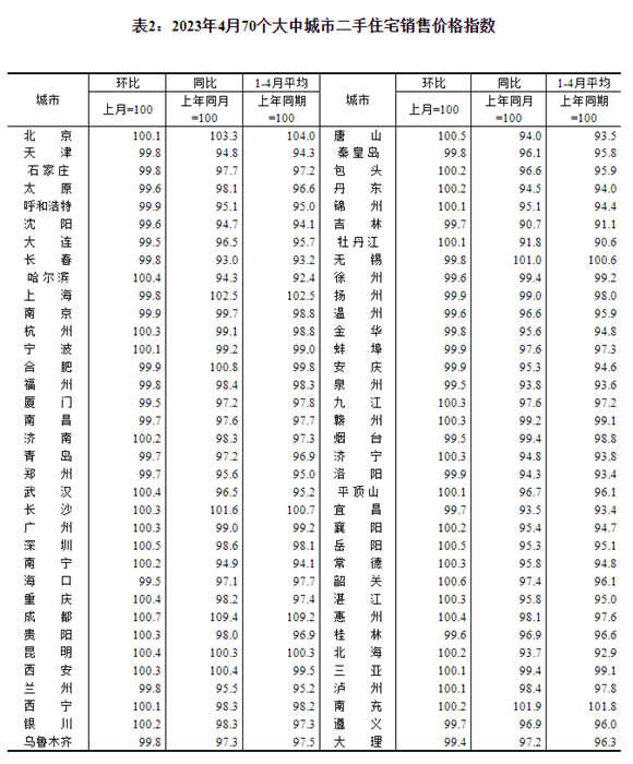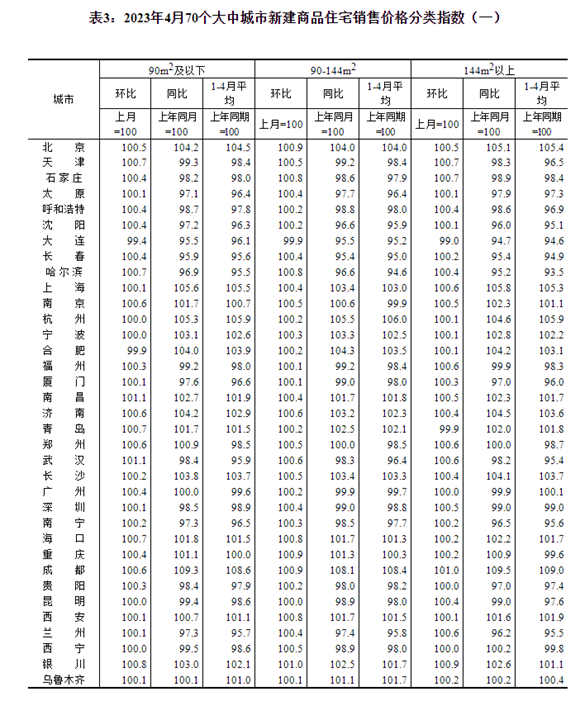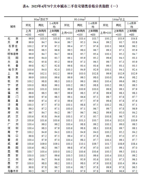 國家統計局城市司首席統計師繩國慶解讀稱,2023年4月份,70個大中城市中商品住宅銷售價格環比上漲城市個數減少,同比上漲城市個數增加。70個大中城市商品住宅銷售價格環比整體漲幅回落、二手住宅環比漲幅回落更為明顯,各線城市商品住宅銷售價格同比上漲或降勢趨緩。