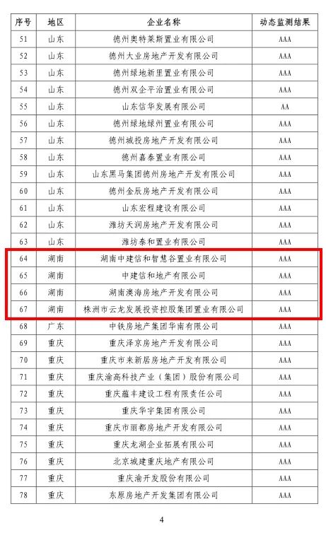 2023年我會在會員企業中積極開展行業信用評價工作,并推薦參加全國信用評價。其中湖南中建信和智慧谷置業有限公司、中建信和地產有限公司、湖南澳海房地產開發有限公司、株洲市云龍發展投資控股集團置業有限公司 4家省房協會員企業通過2023年全國房地產開發企業信用等級動態監測,保持信用評價AAA等級。