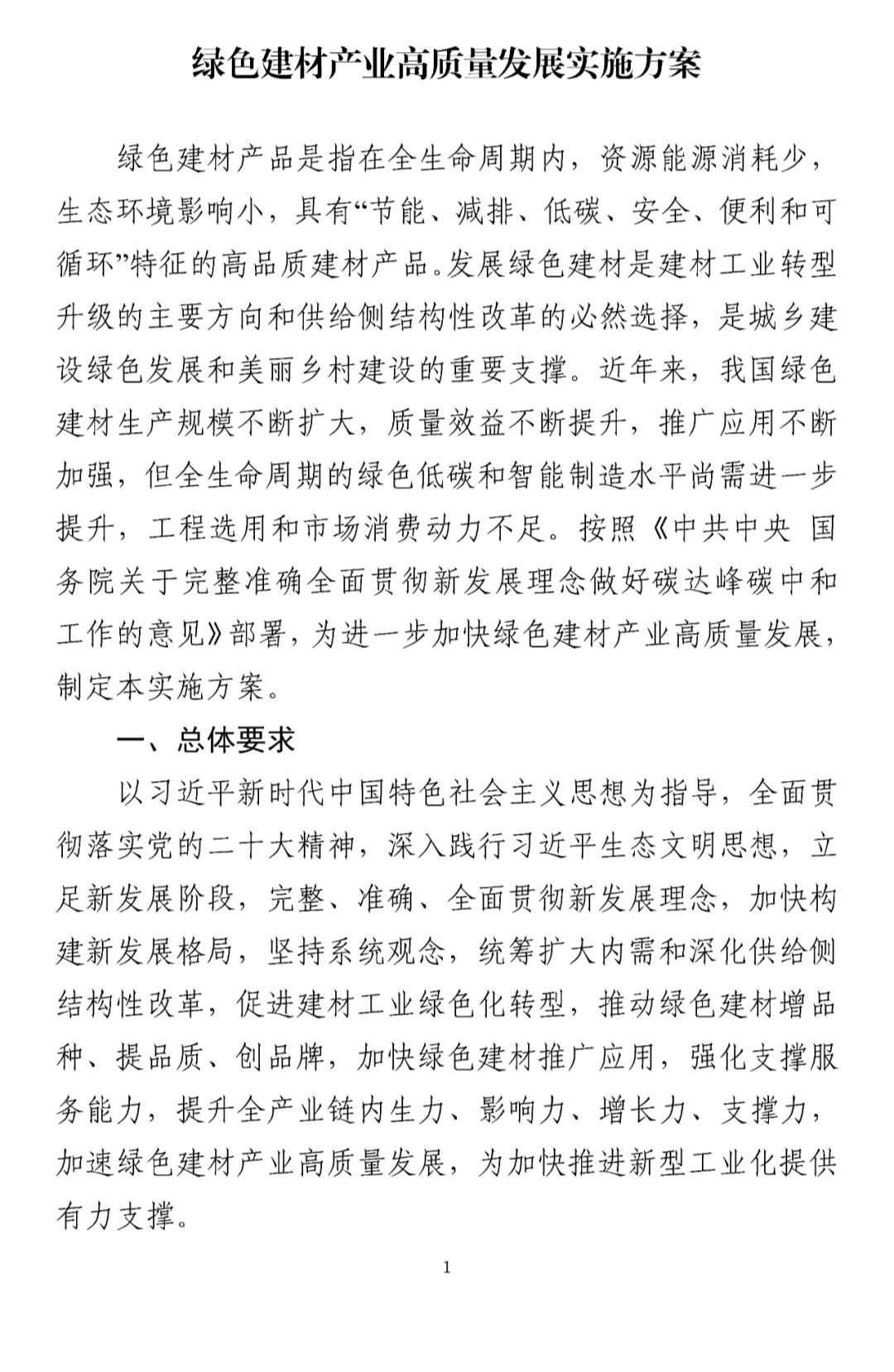 近日,工業(yè)和信息化部、國家發(fā)展改革委、住房城鄉(xiāng)建設(shè)部等十部門印發(fā)綠色建材產(chǎn)業(yè)高質(zhì)量發(fā)展實(shí)施方案(以下簡稱《方案》)。