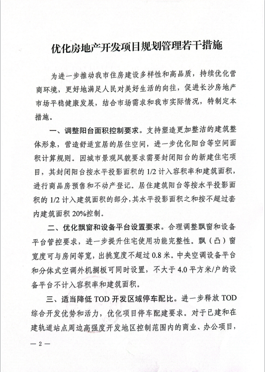 其實(shí),當(dāng)天長沙市房地產(chǎn)平穩(wěn)健康和安全運(yùn)行協(xié)調(diào)小組也印發(fā)了另一則通知——《優(yōu)化房地產(chǎn)開發(fā)項(xiàng)目規(guī)劃管理若干措施》,事關(guān)項(xiàng)目報(bào)規(guī)建設(shè)等相關(guān)事項(xiàng),條件對(duì)比前期技術(shù)規(guī)范多有調(diào)整,主要涉及陽臺(tái)、飄窗、TOD項(xiàng)目停車配比、社區(qū)配套用房、住宅商業(yè)配套比例和后置出讓金這個(gè)六個(gè)方面。