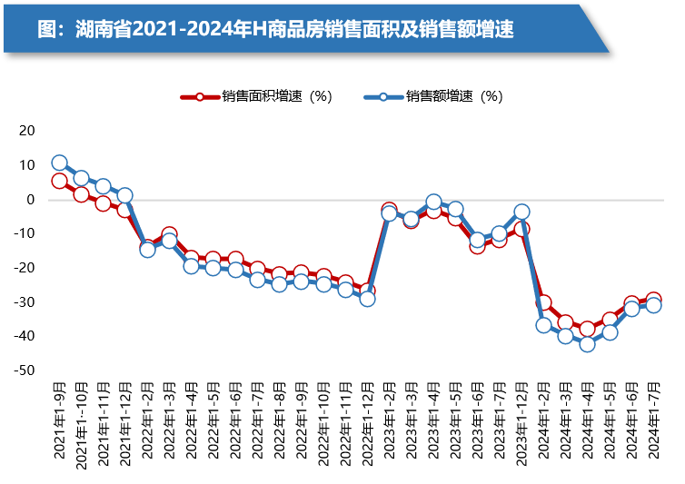截止2024年7月,湖南省統(tǒng)計(jì)局?jǐn)?shù)據(jù)顯示,全省商品房銷售面積2428.66萬(wàn)方,同比下降28.8%,商品房銷售金額1540.32億元,同比下降30.5%。市場(chǎng)整體信心不足,部分城市出現(xiàn)房?jī)r(jià)下跌。