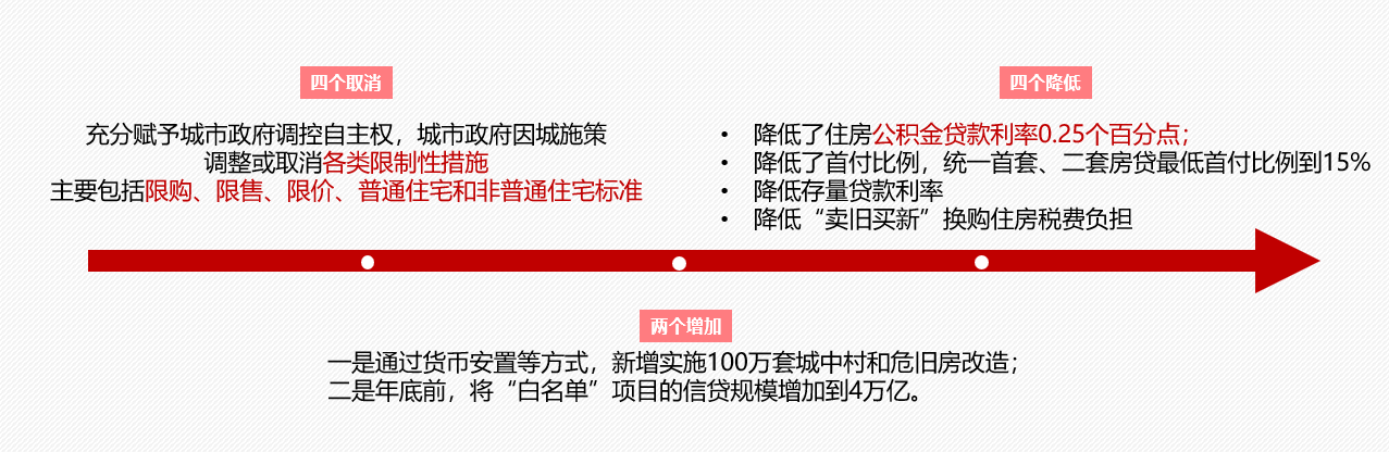 9月26日中央政治局會(huì)議首次明確“促進(jìn)房地產(chǎn)市場(chǎng)止跌回穩(wěn)”,對(duì)商品房建設(shè)要嚴(yán)控增量、優(yōu)化存量、提高質(zhì)量,加大“白名單”項(xiàng)目貸款投放力度,支持盤活存量閑置土地。