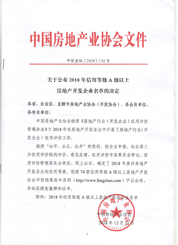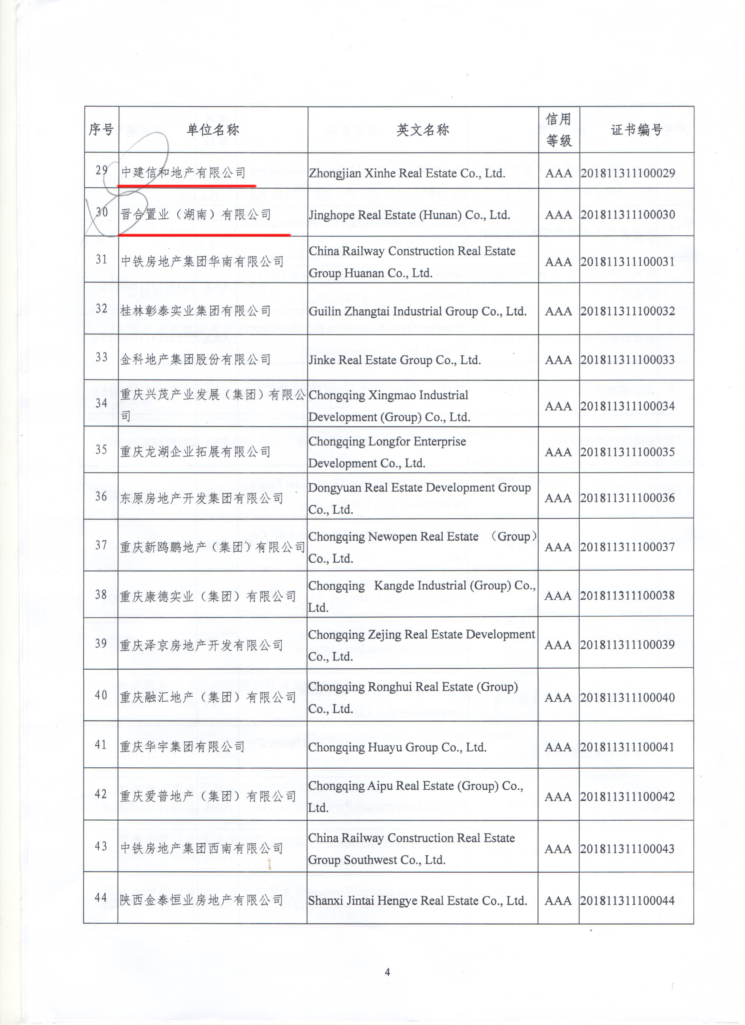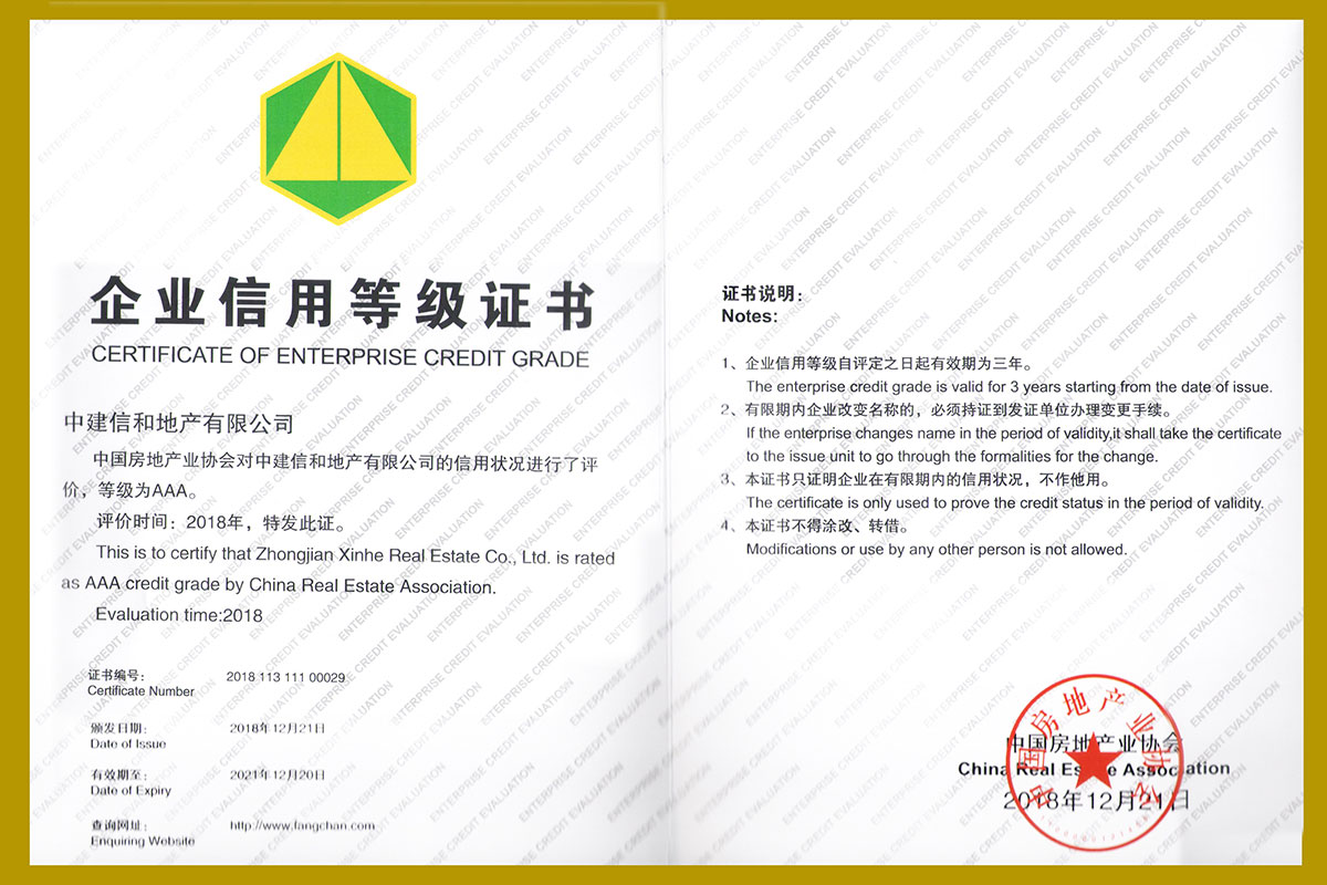 熱烈祝賀湖南中建信和地產(chǎn)有限公司和晉合置業(yè)(湖南)有限公司榮獲中國房地產(chǎn)業(yè)協(xié)會頒發(fā)“信用等級AAA”企業(yè)