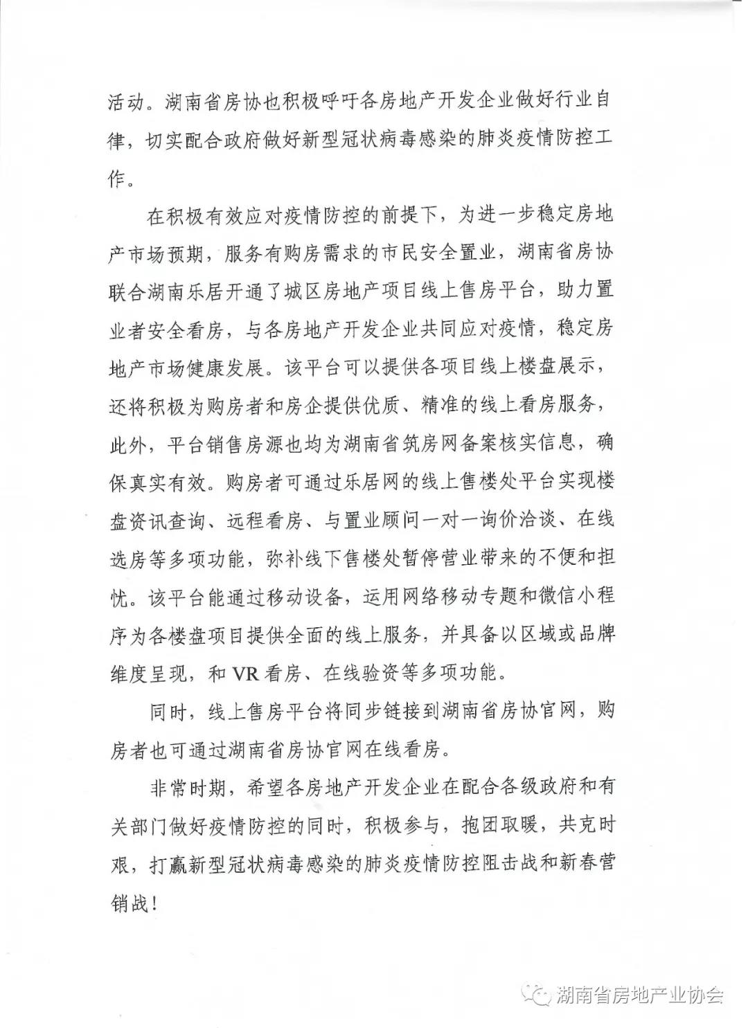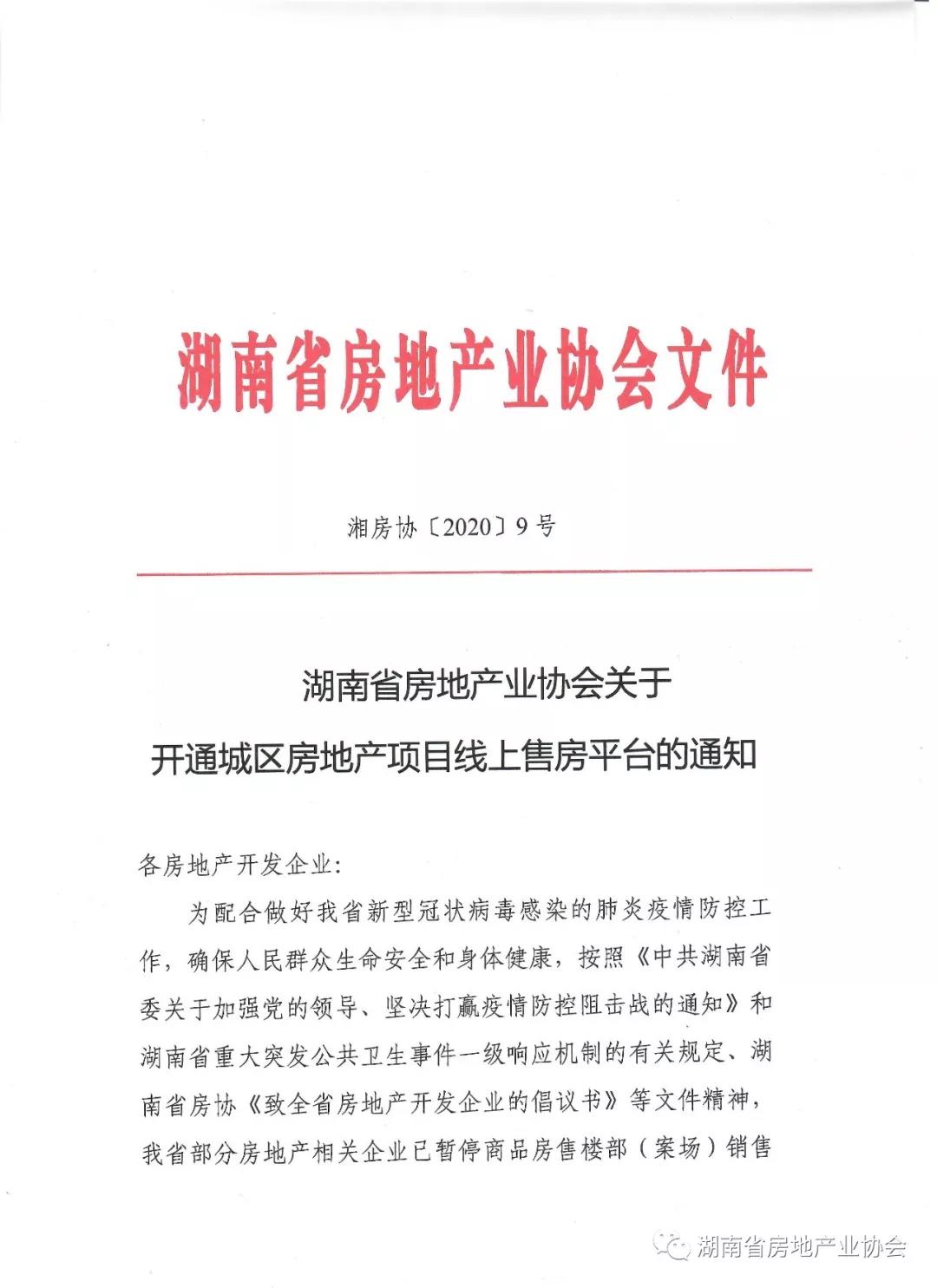 湖南省房地產(chǎn)業(yè)協(xié)會關(guān)于開通城區(qū)房地產(chǎn)項目線上售房平臺的通知