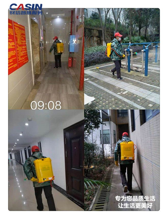 2、園區(qū),保潔人員第一次全方位消殺;