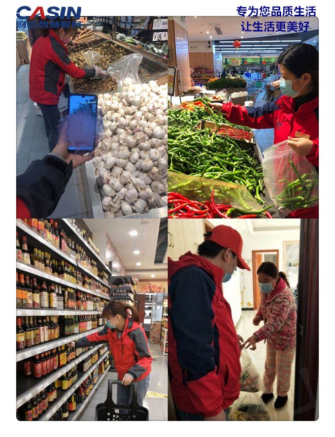 5、項目經(jīng)理趙鋒帶著客服小姐姐們一起到超市為業(yè)主代購副食品以及新鮮蔬菜,讓業(yè)主感受到溫暖。