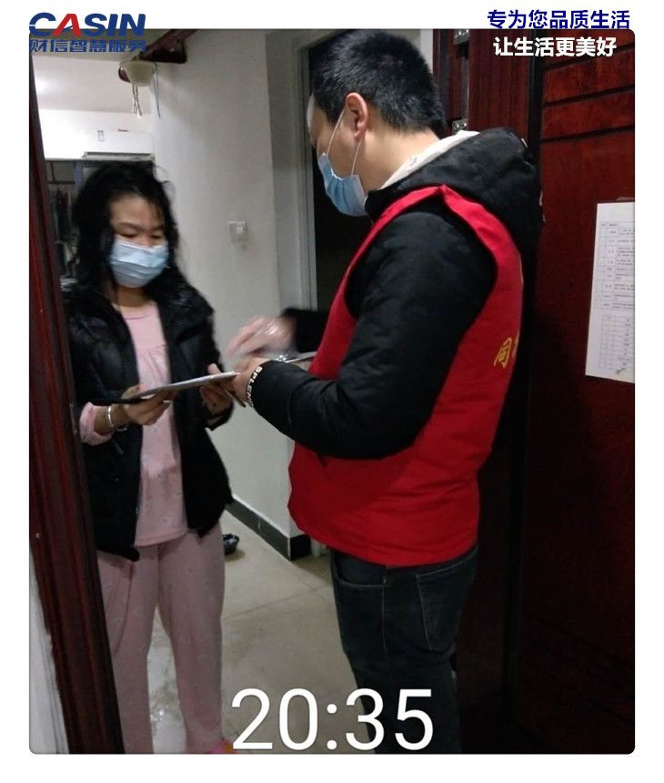 ___項目經(jīng)理趙鋒帶隊,積極配合社區(qū)上門走訪業(yè)主,疫情防控登記、檢查,與業(yè)戶溝通解釋,宣傳疫情防控工作。