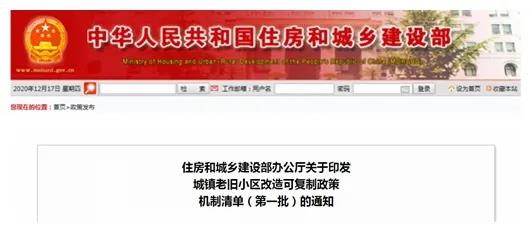 《城鎮老舊小區改造可復制政策機制清單(第一批)》