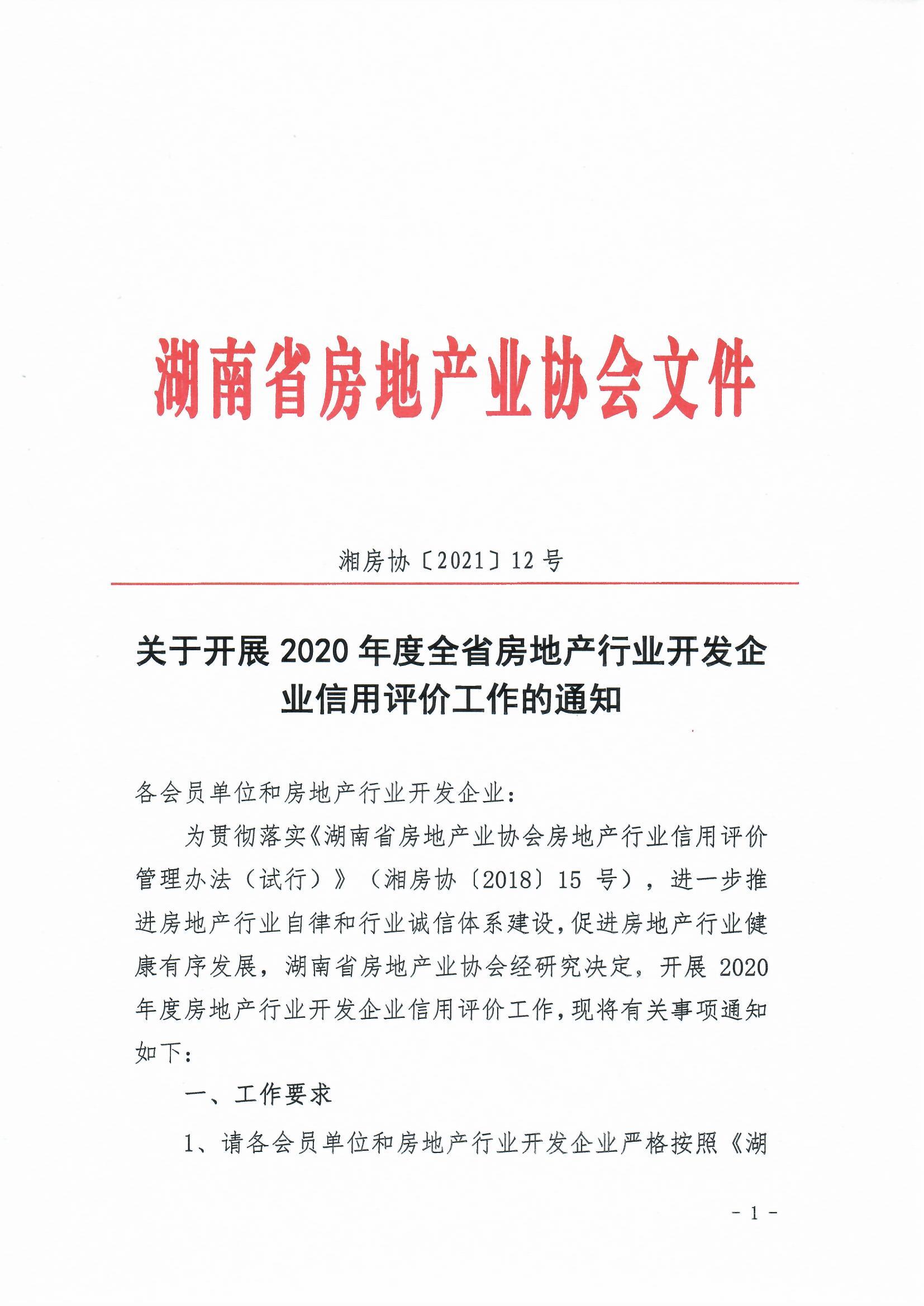關(guān)于開展2020年度全省房地產(chǎn)行業(yè)開發(fā)企業(yè)信用評價(jià)工作的通知