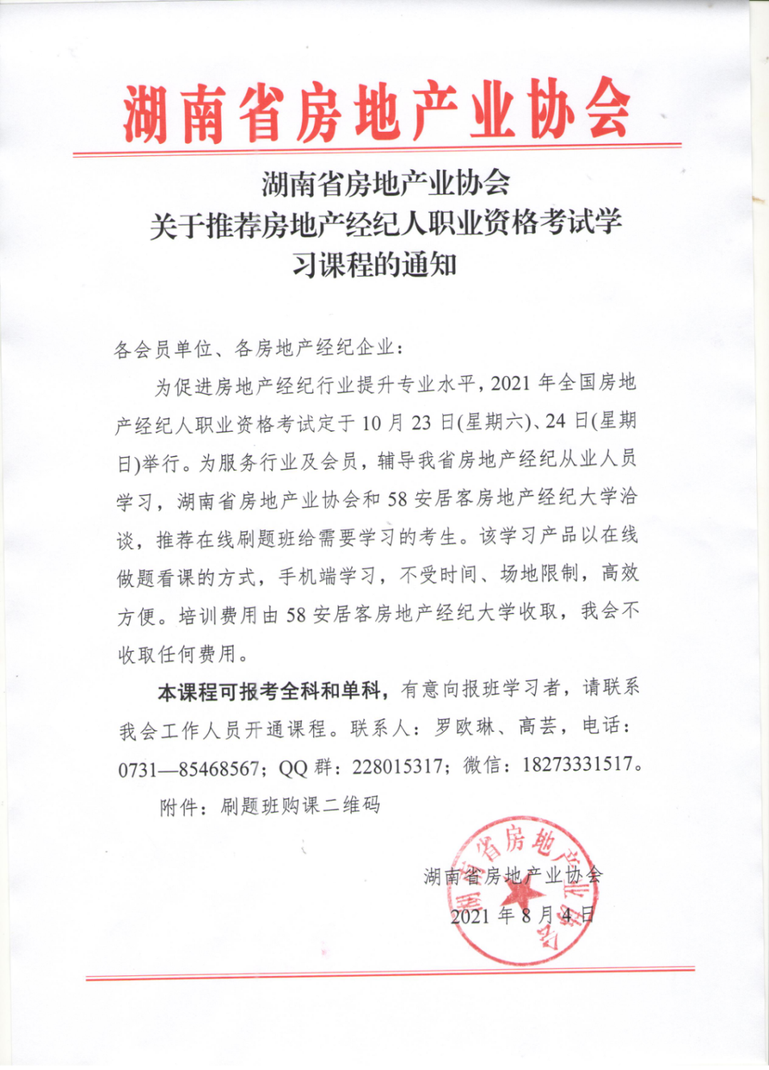 關(guān)于推薦房地產(chǎn)經(jīng)紀人職業(yè)資格考試學習課程的通知