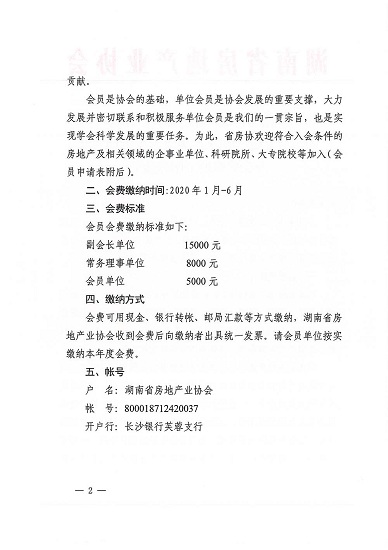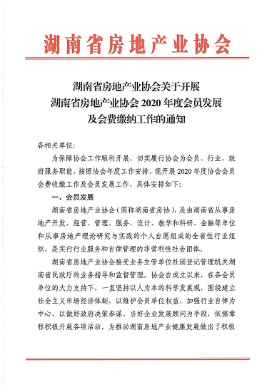 關(guān)于開展湖南省房地產(chǎn)業(yè)協(xié)會2020年度會員發(fā)展及會費(fèi)繳納工作的通知