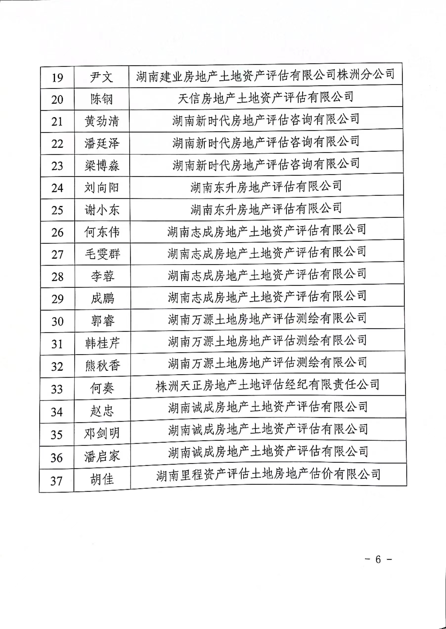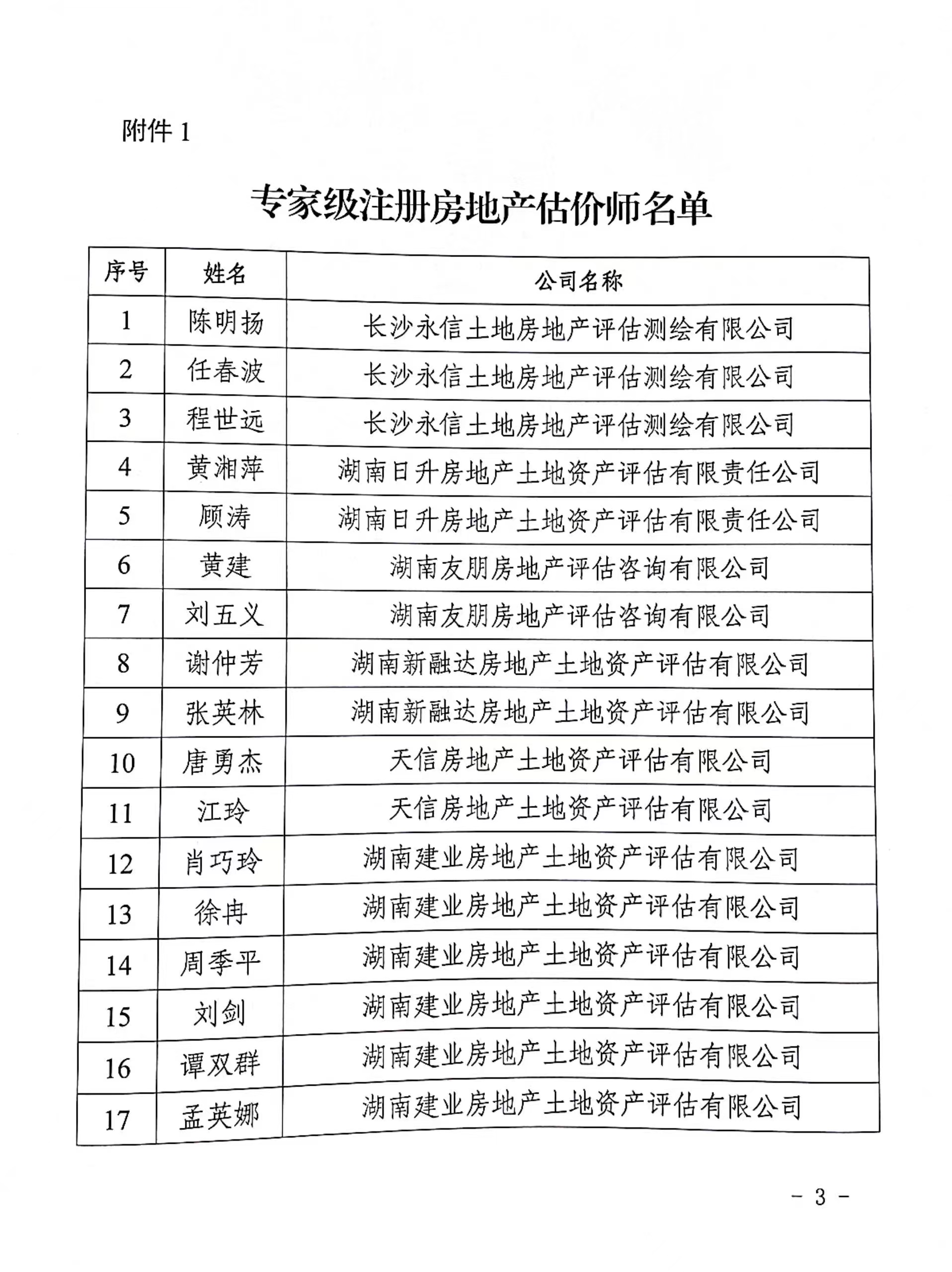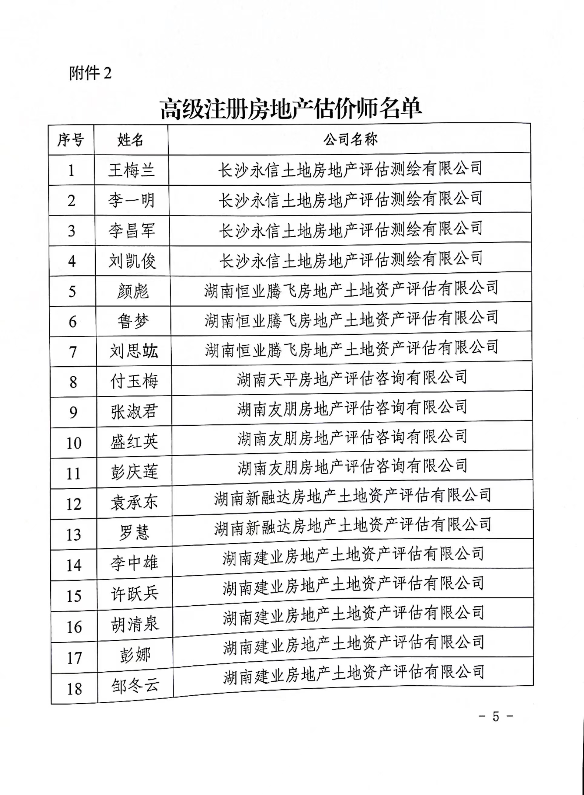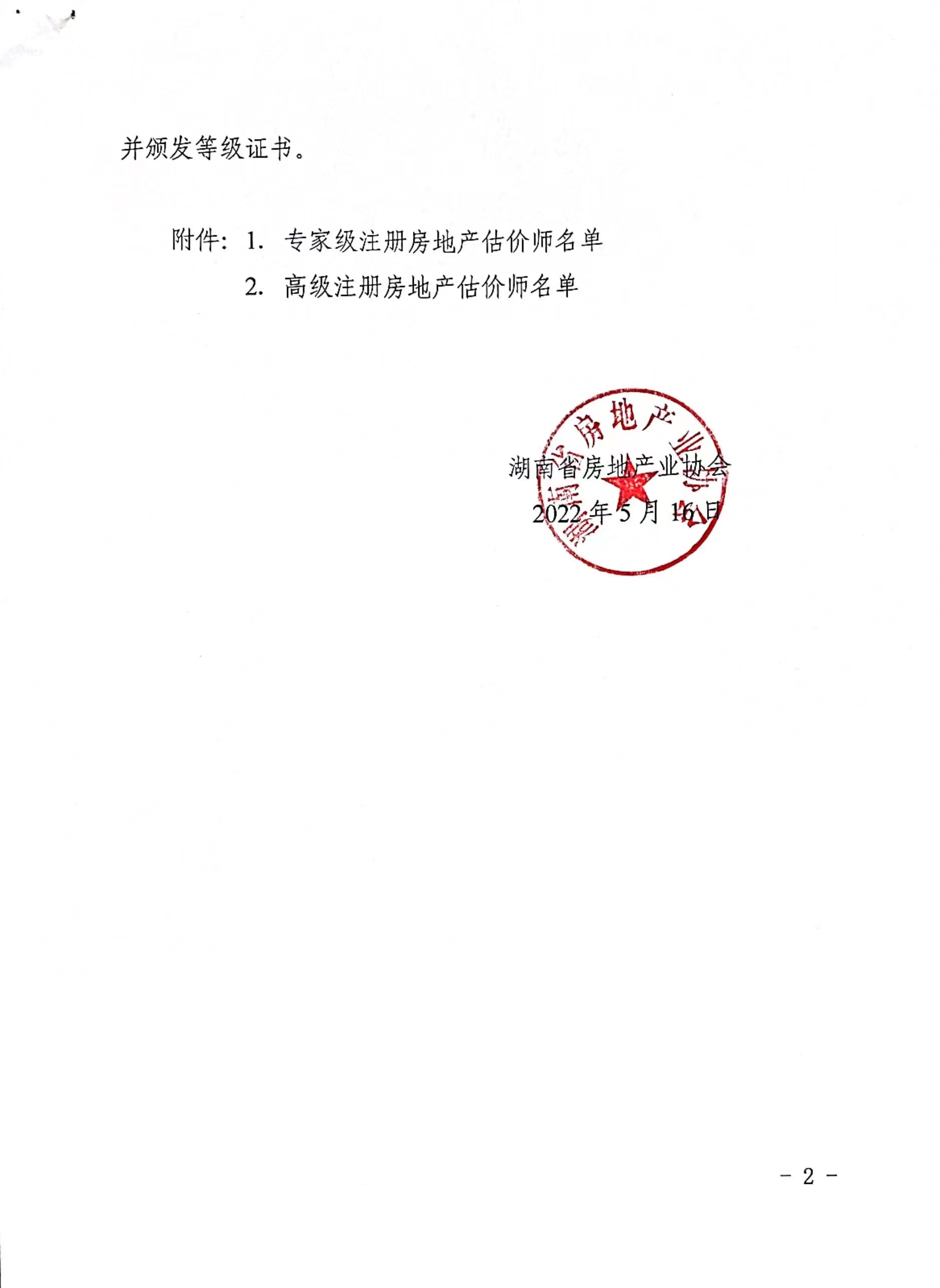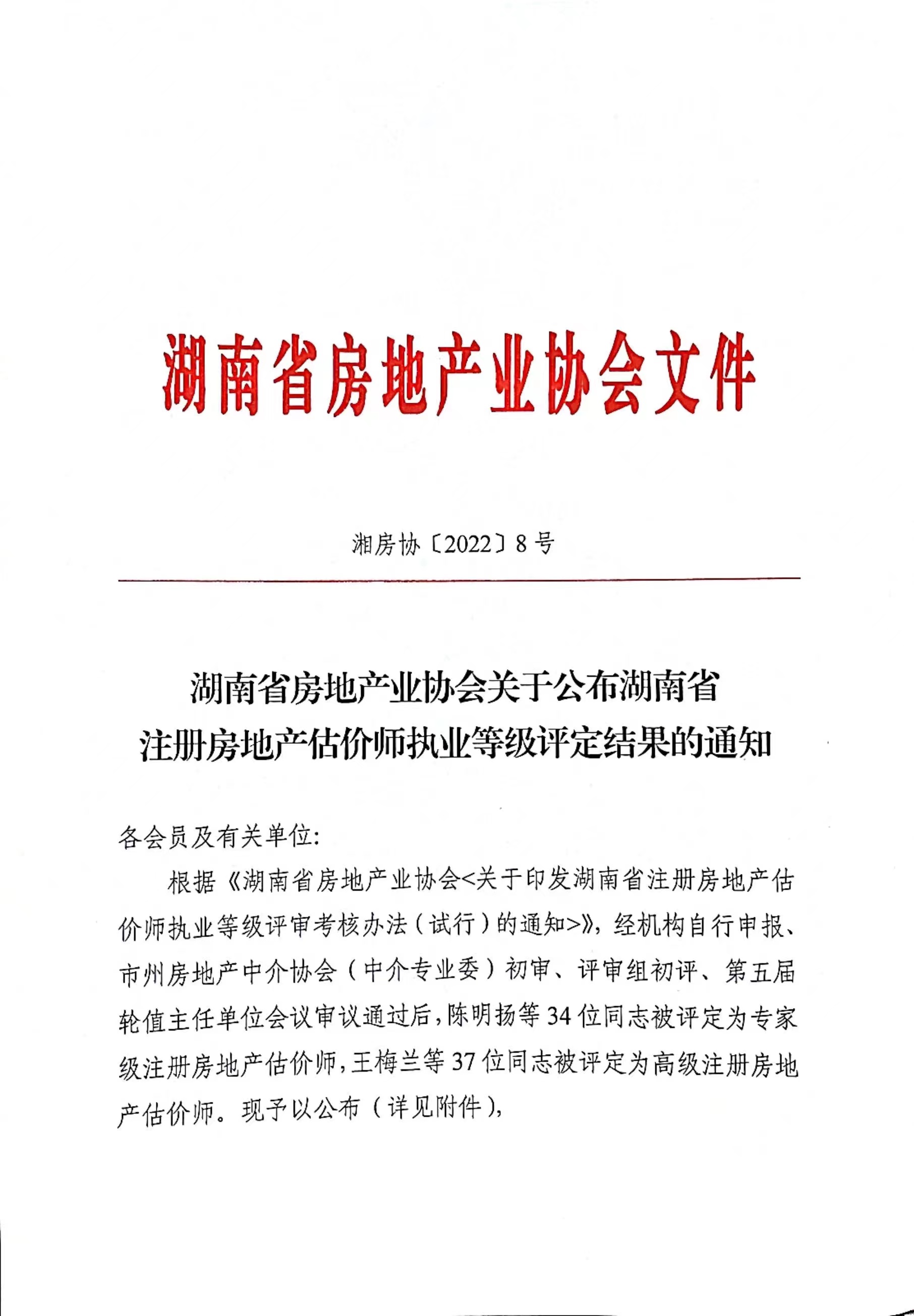關于公布湖南省注冊房地產估價師執業等級評定結果的通知
