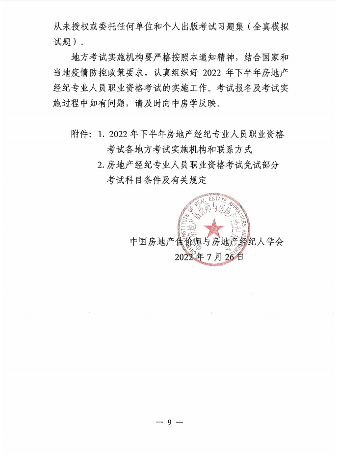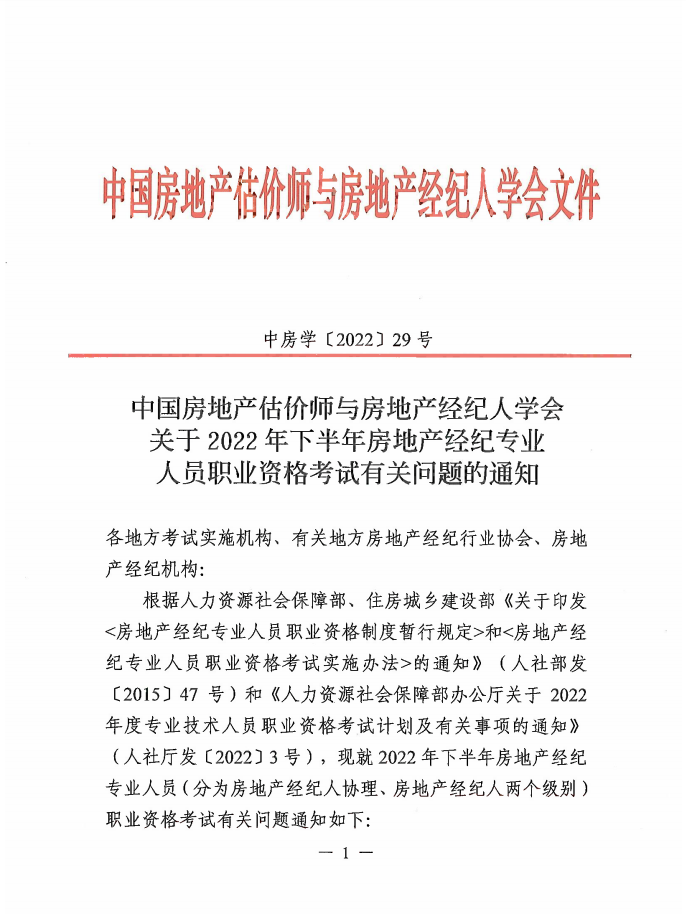 附件:中國房地產(chǎn)估價師與房地產(chǎn)經(jīng)紀(jì)人學(xué)會關(guān)于2022年下半年房地產(chǎn)經(jīng)紀(jì)專業(yè)人員職業(yè)資格考試有關(guān)問題的通知