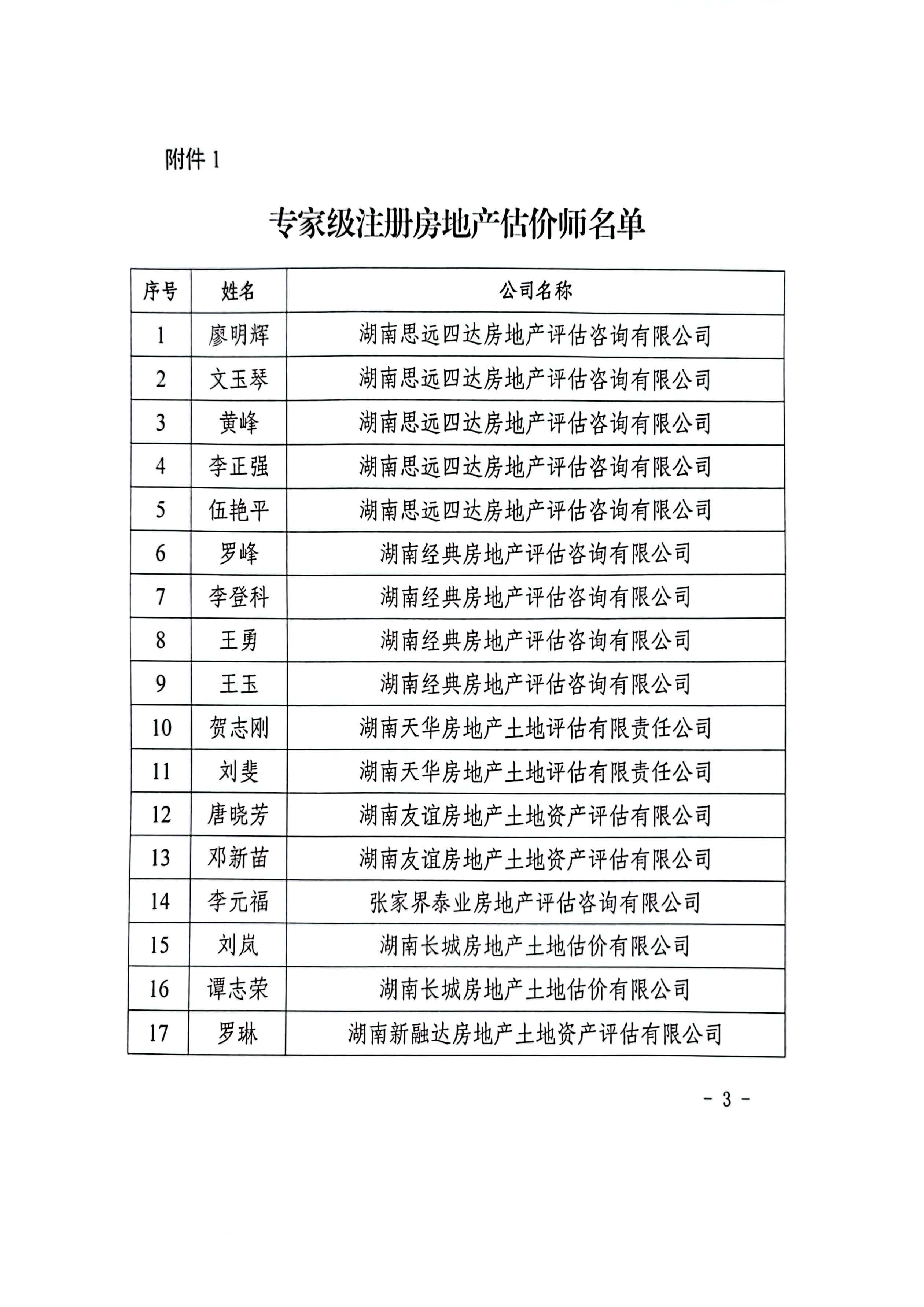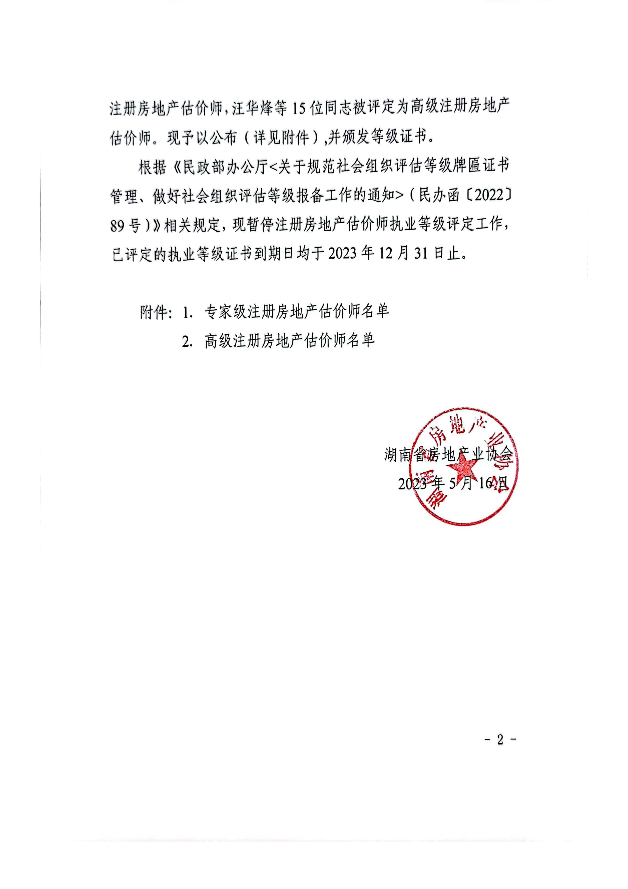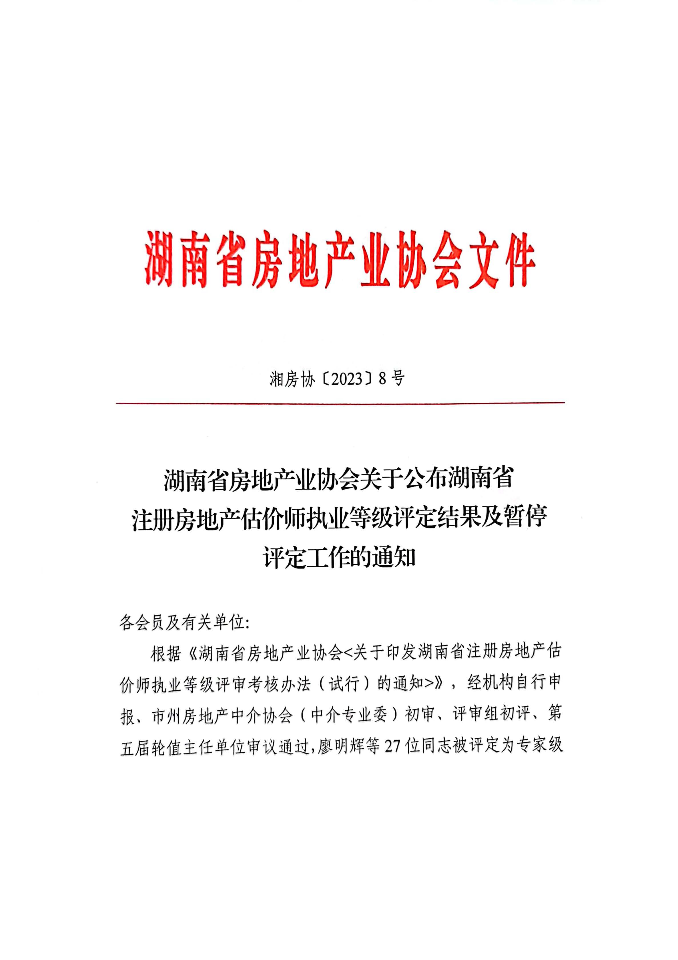 關于公布湖南省注冊房地產估價師執業等級評定結果及暫停評定工作的通知