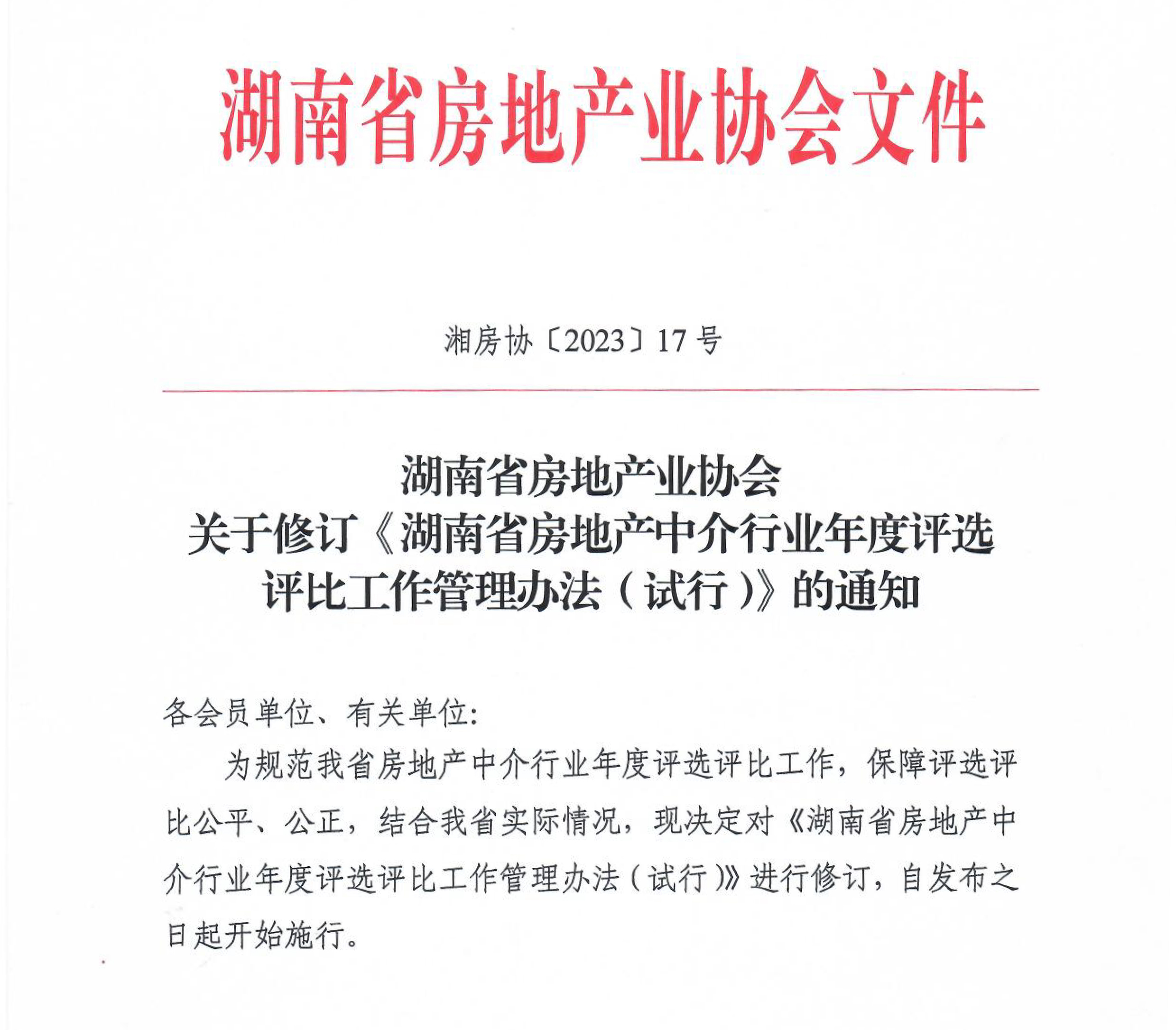 關(guān)于修訂《湖南省房地產(chǎn)中介行業(yè)年度評(píng)選評(píng)比工作管理辦法(試行)》的通知