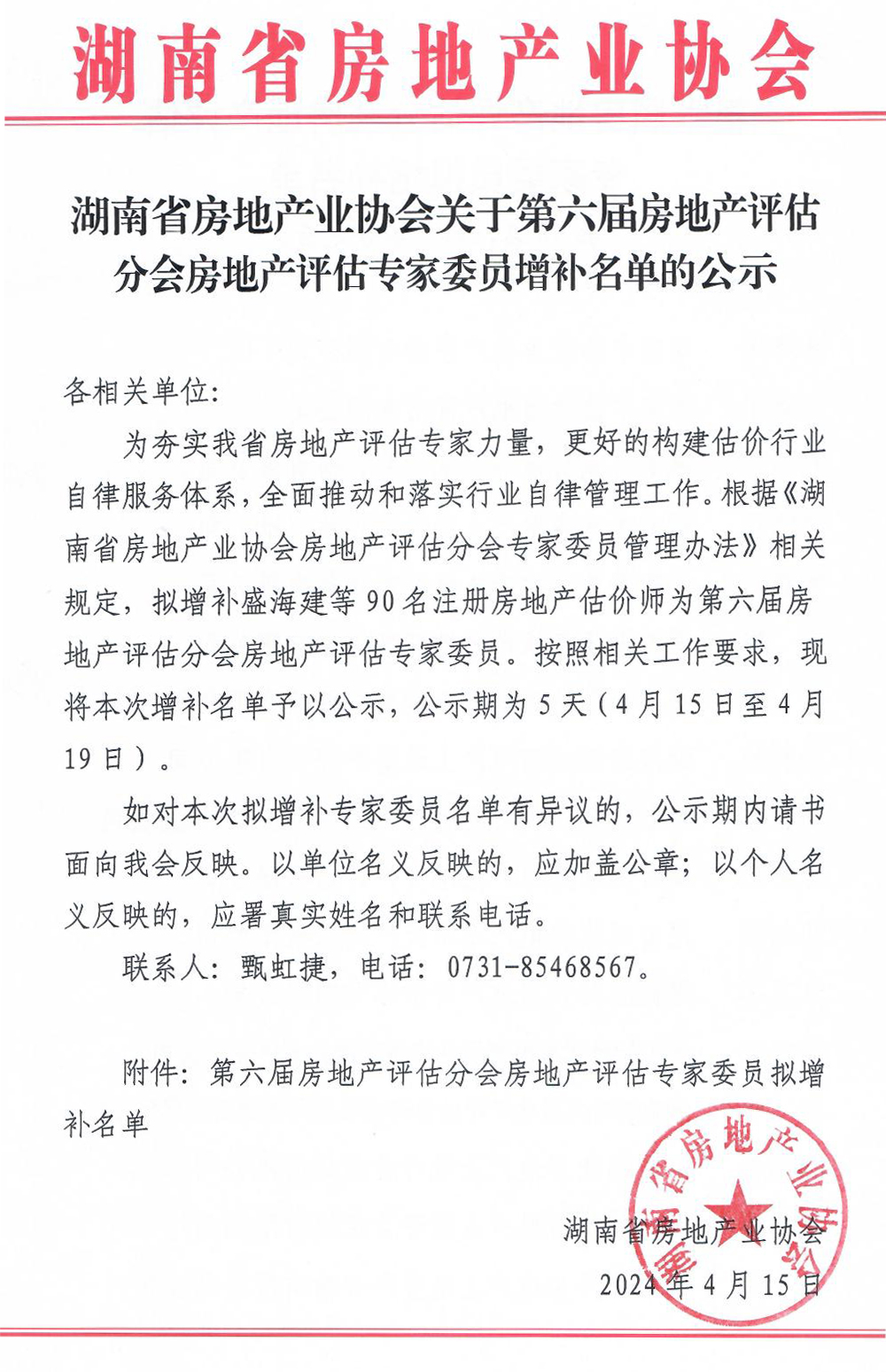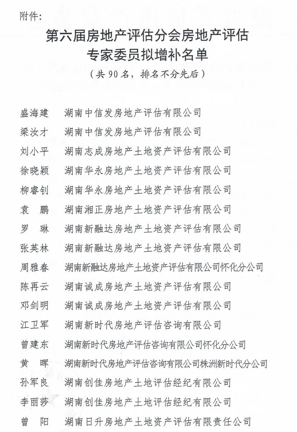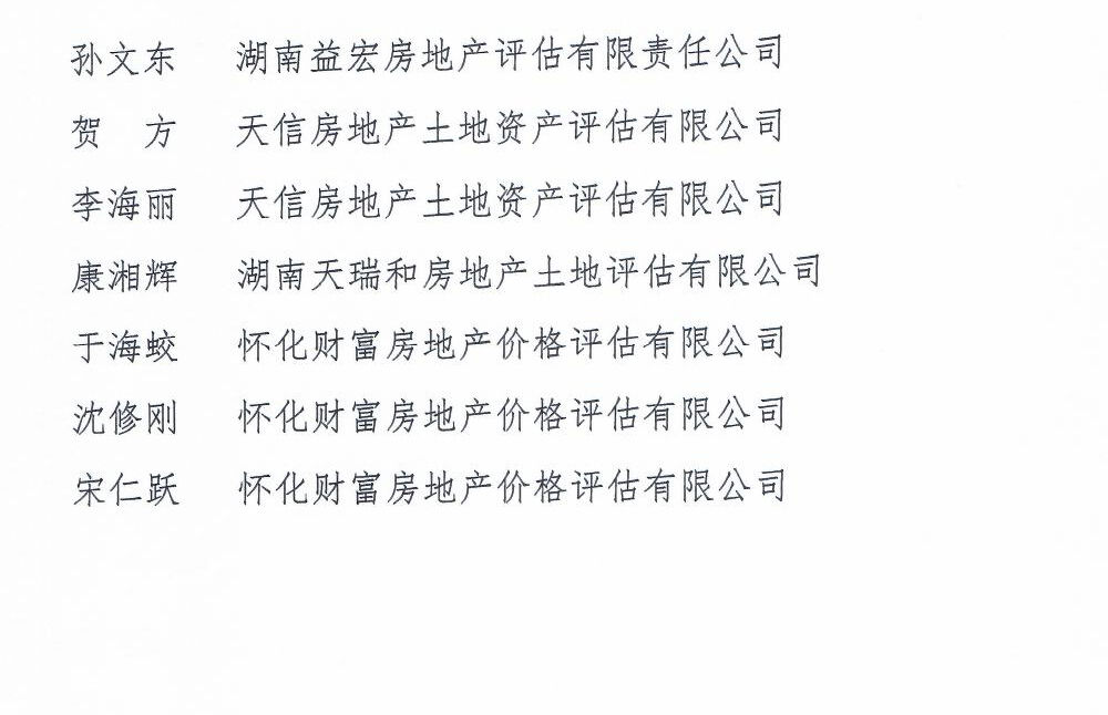 關于第六屆房地產評估分會房地產評估專家委員增補名單的公示