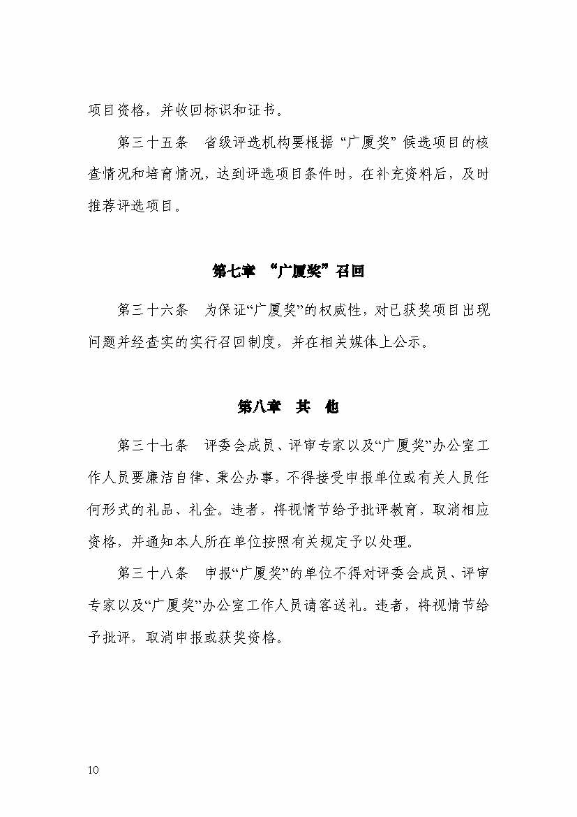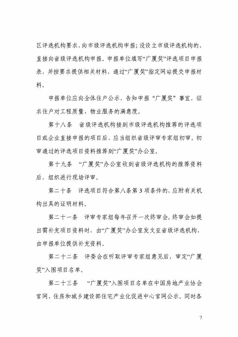關于印發《“廣廈獎”管理辦法》、《“廣廈獎”項目評審方法及標準》(2019 年修訂稿)的通知