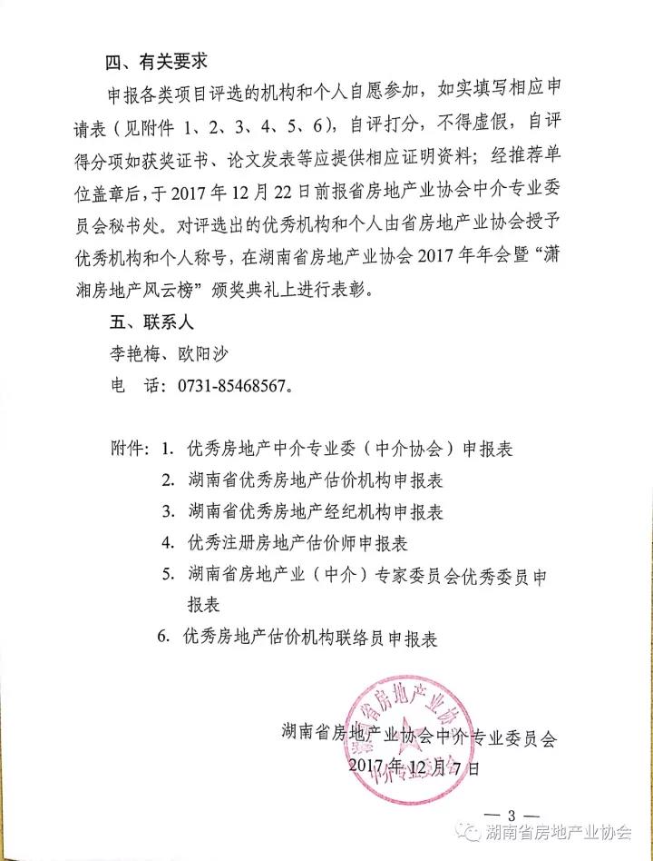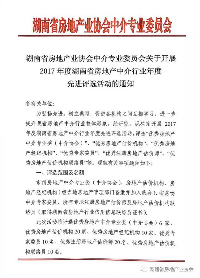 關于開展2017年度湖南省房地產中介行業年度先進評選活動的通知