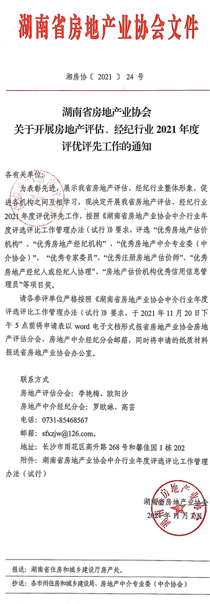 關(guān)于開展房地產(chǎn)評估、經(jīng)紀(jì)行業(yè)2021年度評優(yōu)評先工作的通知