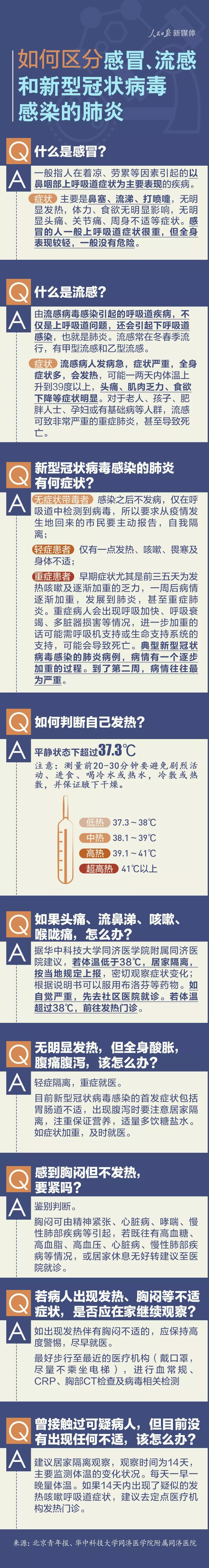 頭痛、流鼻涕、咳嗽、喉嚨痛怎么辦?如何判斷是否發熱?如何區分感冒流感和新型冠狀病毒感染的肺炎?一圖了解
