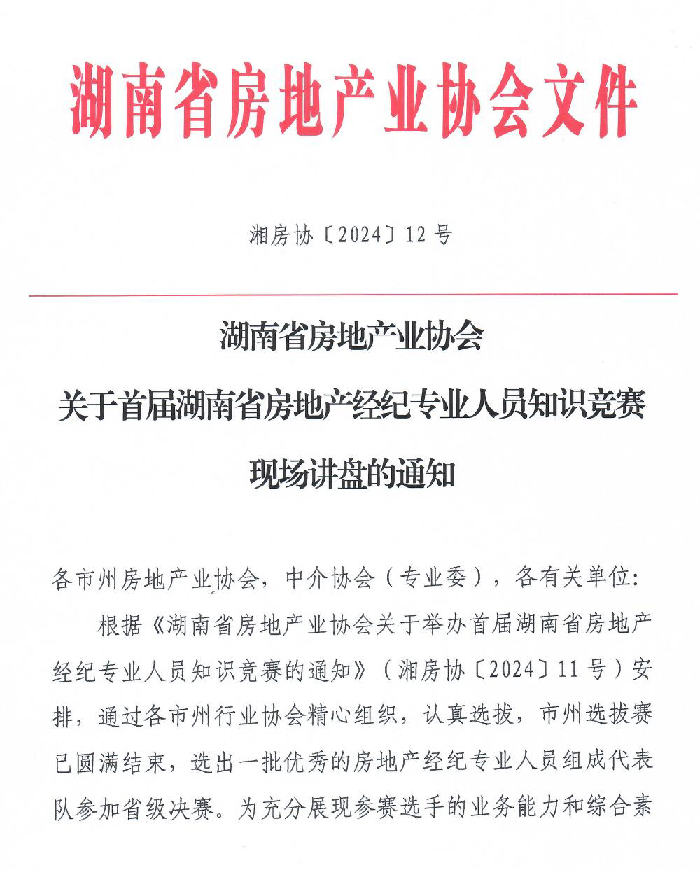 關于首屆湖南省房地產經紀專業人員知識競賽現場講盤的通知