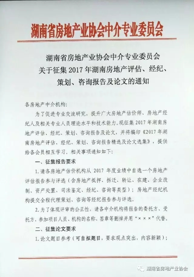 為了促進專業交流研究,提升廣大房地產估價師、房地產經紀人及相關專業人員理論水平和技術能力。現征集2017年湖南房地產評估、經紀、策劃、咨詢報告及論文,并將編印《2017年湖南房地產評估、經紀、策劃、咨詢報告精選及論文選集》,提供給各會員相互學習。相關事項通知如下。